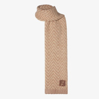 Scarf in camel-colored soft alpaca wool yarn. The Chevron knit with brushed finish gives a soft, flowing texture, while the wool knit trim is worked in a fisherman’s rib knit. Embellished with 3D-effect FF detail on the end, in tone-on-tone brushed alpaca. Made in Italy Composition: 52% alpaca, 28% fleece wool, 20% polyamide, material 2: 100% wool Product Code: FXT458AYKMF0QB8