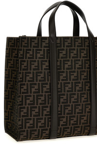 cod. 7VA390AG0MF19KW Shopping bag in 'FF' jacquard fabric, leather details and double handle, adjustable and removable shoulder strap. Color: Brown Size & Fit: W 41 x H 35 x D 19 cm Composition: 62% polyester 33% cotton 5% res