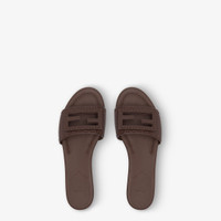 Wide-band slides. Made of dark brown tumbled leather and embellished with hand-sewn tone-on-tone macro Selleria stitching, an emblem of the iconic Selleria workmanship handed down through generations of Fendi artisans since 1925. Tone-on-tone FF Baguette motif. Made in Italy Composition: 100% calf leather, inside: 100% calf leather Product Code: 8R8136AQY2F1TOH