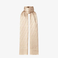 Large rectangular stole made of beige organic silk. All-over jacquard FF motif. Hand-fringed edges. Made in Italy Composition: 100% silk Product Code: FXT185ANBEF10X5
