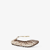 Fendi Filo ballerinas, gathered and with a metallic ankle strap. FF embellishment on the heel. Suede sole with raised rubber inserts. Made of beige karung leather. Gold-finish metalware. Made in Italy Measurements: - Heel height : 5 mm Composition: 100% karung snake leather, interior: 100% lamb leather Product Code: 8F8534VMGF0QB9