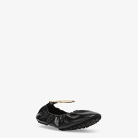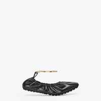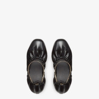 Fendi Filo ballerinas, gathered and with a metallic ankle strap. FF embellishment on the heel. Suede sole with raised rubber inserts. Made of glossy black leather. Gold-finish metalware. Made in Italy Measurements: - Heel height : 5 mm Composition: 100% calf leather, inside: 100% lamb leather Product Code: 8F8534NA7F0QA1
