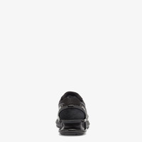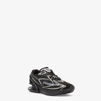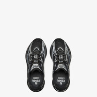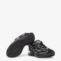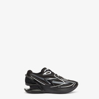 First 1 sneakers with laces and diagonal F-shaped sculpted corrugated soles. Made of black and charcoal gray tech fabric. Framilon inserts. Customized with screen-printed Fendi lettering on the tongue and the side. Made in Italy Measurements: - Heel height : 30 mm Composition: Main material: 100% polyester, 100% calf leather, lining: 100% polyamide, 100% polyester Product Code: 8E8452AQ70F1MEN
