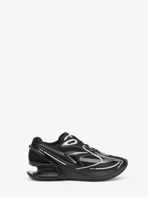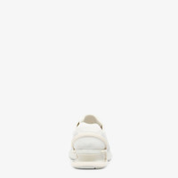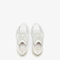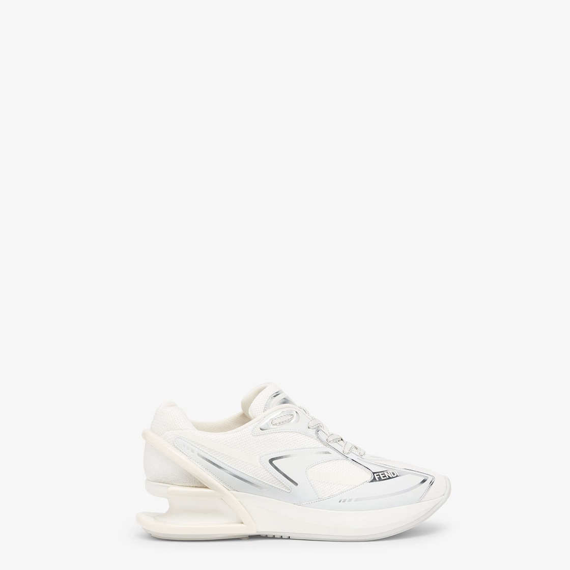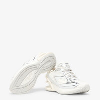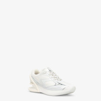 First 1 sneakers with laces and diagonal F-shaped sculpted corrugated soles. Made of white tech fabric. Framilon inserts. Customized with screen-printed Fendi lettering on the tongue and the side. Made in Italy Measurements: - Heel height : 30 mm Composition: Main material: 100% polyester, 100% calf leather, lining: 100% polyamide, 100% polyester Product Code: 8E8452AQ70F1MEO