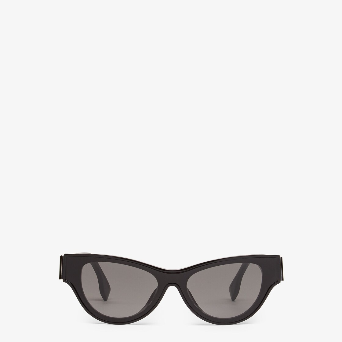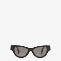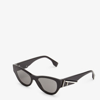 Fendi First cat-eye eyeglasses in black acetate with a wrap-around lens construction. Temples with oversize diagonal F motif in palladium-colored metal. Gray lenses. Made in Italy Composition: 100% acetate Product Code: FOA039V1PF1PEG Product Care: Wash your eyeglasses every day with warm water and a pH-neutral soap.Do not use alcohol, aggressive chemical products or disinfectant wipes and do not dry them with paper or other cloths that could scratch them or leave streaks.Dry with a clean microfiber cloth.After use, always keep your eyeglasses in their case.
