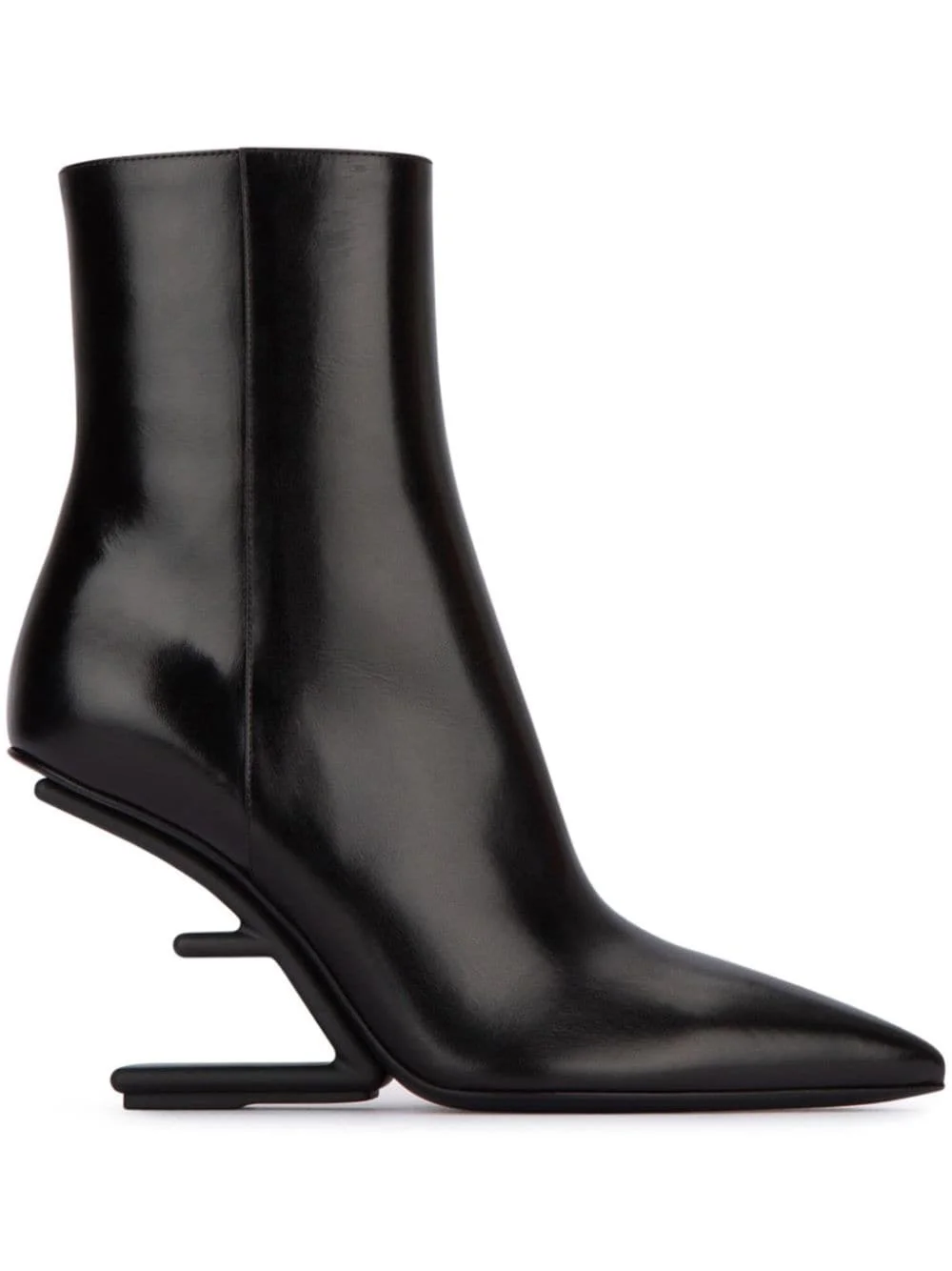 95mm sculpted-heel boots Highlights - Black - Calf leather - Smooth grain - Pointed toe - Branded leather insole - High sculpted heel - Ankle-length Made in Italy Composition Lining: Calf Leather 100% Sole: Calf Leather 100% Outer: Calf Leather 100% SIZE & FIT Measurement HEEL 3.74 in(9.5 cm)
