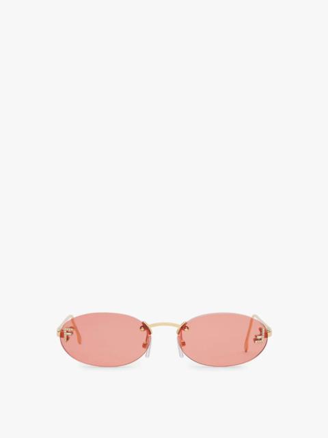 Oval Fendi First Crystal glasses with a gold-colored rimless metal structure. Blue lenses embellished with micro F in crystals. Adjustable nose pads. Made in Italy Composition: 100% metal Product Code: FOL043V1TF094D Product Care: Wash your eyeglasses every day with warm water and a pH-neutral soap.Do not use alcohol, aggressive chemical products or disinfectant wipes and do not dry them with paper or other cloths that could scratch them or leave streaks.Dry with a clean microfiber cloth.After use, always keep your eyeglasses in their case.