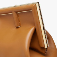 Medium Fendi First bag made of soft, caramel-colored nappa leather with an oversized metal F clasp bound in tone on tone nappa leather. Featuring an internal compartment lined in an iconic FF motif fabric, pull out internal attachment points and gold-finish metalware. Can be carried by hand as a clutch or worn on the shoulder thanks to the detachable shoulder strap. Made in Italy Composition: 100% Lambskin, interior: 27% Polyester, 27% Polyamide, 27% Polyurethane, 15% Cotton, 4% Resin Measurements: - Height: 23.5 cm - Depth: 15 cm - Length: 32.5 cm - Weight: 1.2 kg - Shoulder strap drop: 27 cm Product Code: 8BP127ABVEF0NYJ