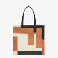 Medium Fendi Flip shopper in leather with an FF motif in brown, white and black creating a puzzle effect. Featuring an embossed oversized F in the corner on both sides, this shopper can be folded, turning it into a triangular clutch. Seemingly flat and minimalist, the bottom of the bag opens when it is full, making it surprisingly spacious. Sporty suede-effect lined inner compartment. It can be worn on the shoulder or carried by hand thanks to the two handles in two contrasting colors, or folded as a clutch. Made in Italy Measurements: - Height : 29.5 cm - Depth : 1.5 cm - Width : 33 cm - Weight : 0.64 kg Composition: 100% calf leather, inside: 100% lamb leather Product Code: 8BH419AS4DF1OZ3