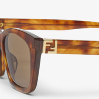 Forever Fendi cat-eye sunglasses made of Havana acetate embellished with FF inlaid in gold-colored metal on the temples. Brown lenses. Made in Italy Composition: 100% acetate Product Code: FOL141V1PF1VJY Product Care: Wash your eyeglasses every day with warm water and a pH-neutral soap.Do not use alcohol, aggressive chemical products or disinfectant wipes and do not dry them with paper or other fabrics that could scratch them or leave streaks.Dry with a clean microfiber cloth.After use, always keep your eyeglasses in their case.