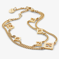 Double chain bracelet with FF charm. Adjustable clip closure. Made of gold-finish metal. Made in Italy Composition: 100% bronze Product Code: 8AL013B08F0CFK Product Care: The product you have purchased may be embellished with a precious metal top or varnish and may also feature appliques, gemstones (in various shades of the same color), crystals, plexiglass or resin. The mixture of materials and the special details give this product its unique character. To best maintain the product’s appearance over time, avoid contact with sea water, spa water, lacquers, perfumes, solvents, chemicals and abrasive materials. If necessary, clean with water and a neutral soap and/or polish with a dry microfiber cloth.
