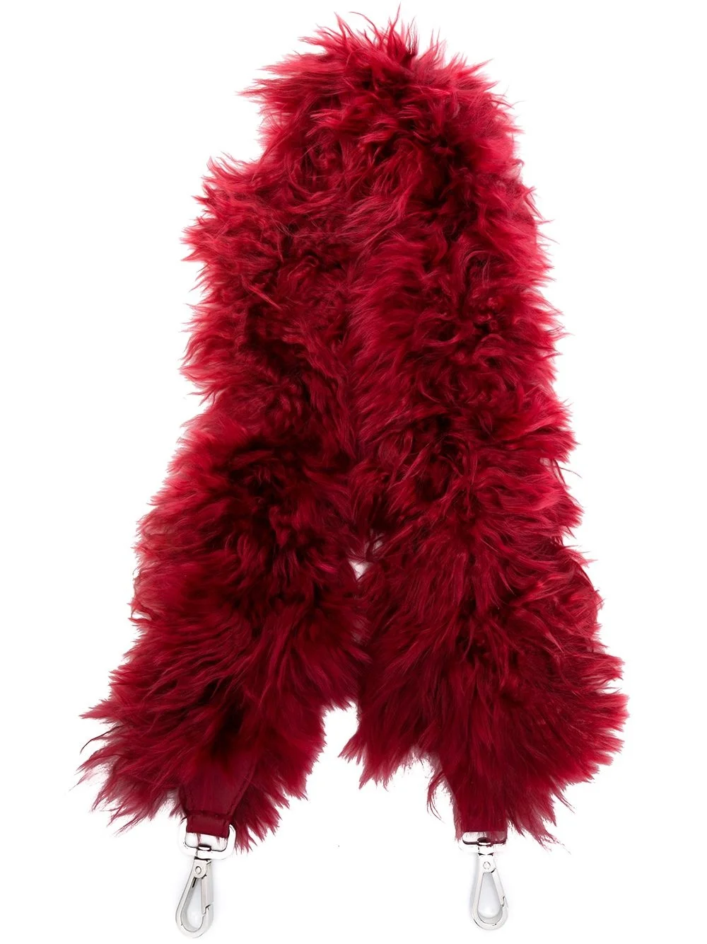 furry shoulder strap Red alpaca wool furry shoulder strap from Fendi. Made in Italy Composition Alpaca 100%, Calf Leather 100% SIZE & FIT Measurement WIDTH 1.96 in(5 cm) LENGTH 35.43 in(90 cm)