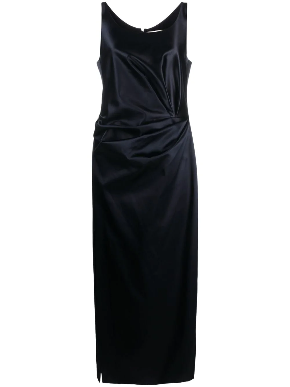 gathered silk dress Imagined in a midnight blue tone, this shift dress from Fendi catches the light through gathered detailing and its smooth silk construction. Highlights - Midnight blue - Silk - Scoop neck - Rear zip fastening - Sleeveless - Gathered detailing - Shift style - Straight hem - Ankle-length Made in Italy Composition Cotton 70%, Silk 30% Lining: Silk 100% SIZE & FIT Model measurements Height 5 ft 10 in(1.78 m) Bust/Chest 32.67 in(83 cm) Hips 35.43 in(90 cm) Waist 23.22 in(59 cm) FittingInformation Designed for a slim fit that sits just away from the body offering a close yet comfortable fit The vented hem offers movement at the rear Made from a midweight non-stretch fabric This piece fits true to size – take your usual size