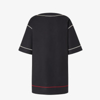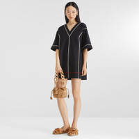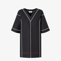 Tunic style short dress. V-neck and wide short sleeves. Made of black compact stretch cotton. Embellished with white and red contrasting stitching for an inside-out effect. Logo embroidery on the left-hand side. Made in Italy Composition: 98% cotton, 2% elastane Size worn: 38 IT. The model is 180 cm tall Product Code: FDD378AUJRF0GME