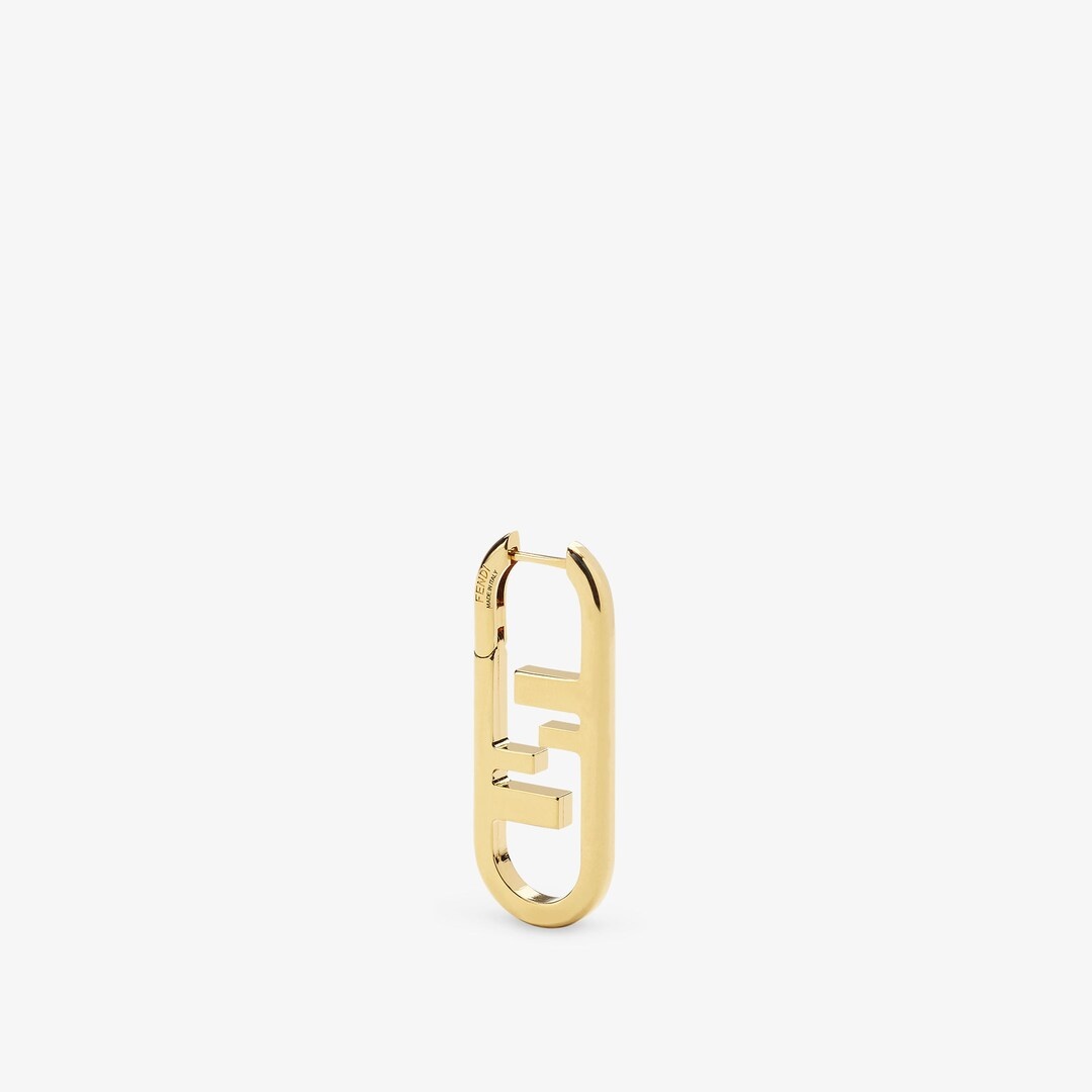 Small single oval earring with Fendi O’Lock motif. Made of gold-finish metal. Made in Italy Composition: 100% Bronze Product Code: 8AH290B08F0CFK Product Care: The product you have purchased may be embellished with a precious metal top or varnish, and may also feature appliqués, stones (in various shades of the same color), crystals, plexiglass and resin. The mixture of materials and the unique features of the product are what give it its character. In order to best maintain the product’s appearance over time, we recommend avoiding contact with sea water, spa water, lacquers, perfumes, solvents, chemicals and abrasive materials. If necessary, clean with water and a neutral soap and/or polish with a dry microfiber cloth.