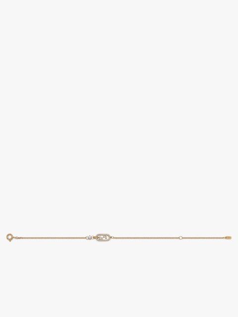 Fine bracelet with Fendi O’Lock motif and small clip closure. Made of gold-finish metal. Embellished with white crystals. Made in Italy Composition: 100% Bronze, strass: 100% Zircon Product Code: 8AH428A44GF089U Product Care: The product you have purchased may be embellished with a precious metal top or varnish, and may also feature appliqués, stones (in various shades of the same color), crystals, plexiglass and resin. The mixture of materials and the unique features of the product are what give it its character. In order to best maintain the product’s appearance over time, we recommend avoiding contact with sea water, spa water, lacquers, perfumes, solvents, chemicals and abrasive materials. If necessary, clean with water and a neutral soap and/or polish with a dry microfiber cloth.