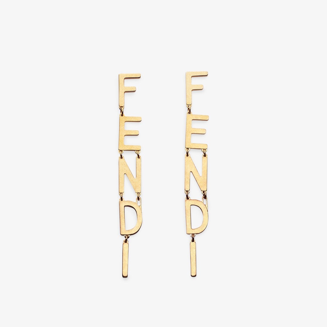 Drop earrings with Fendi lettering. Made of metal with a gold finish. Made in Italy Composition: 100% brass Product Code: 8AH031B08F1CHL Product Care: The product you have purchased may be embellished with a precious metal top or varnish, and may also feature appliqués, stones (in various shades of the same color), crystals, plexiglass and resin. The mixture of materials and the unique features of the product are what give it its character. In order to best maintain the product’s appearance over time, we recommend avoiding contact with sea water, spa water, lacquers, perfumes, solvents, chemicals and abrasive materials. If necessary, clean with water and a neutral soap and/or polish with a dry microfiber cloth.