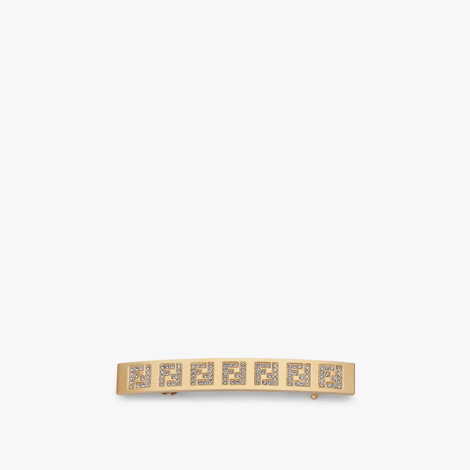 Hair clip. Made of gold-finish metal. Decorated with white crystal FF motif. Made in ItalyComposition: 100% Brass, 100% Iron, strass: 100% Crystal Product Code: 8AG9756GXF089U Product Care: The product you have purchased may be embellished with a precious metal top or varnish, and may also feature appliqués, stones (in various shades of the same color), crystals, plexiglass and resin. The mixture of materials and the unique features of the product are what give it its character. In order to best maintain the product’s appearance over time, we recommend avoiding contact with sea water, spa water, lacquers, perfumes, solvents, chemicals and abrasive materials. If necessary, clean with water and a neutral soap and/or polish with a dry microfiber cloth.
