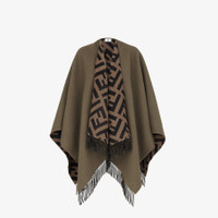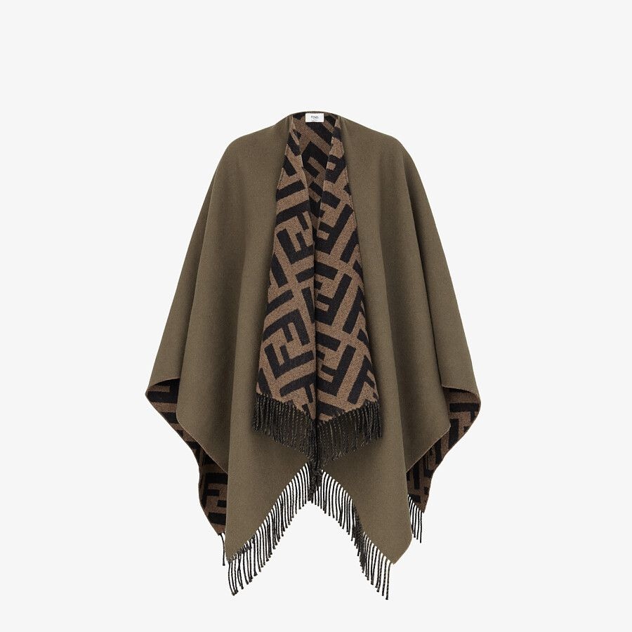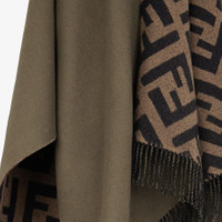 Reversible wool and cashmere poncho. One side is embellished with the FF motif in brown and black, while the other is plain green. Fringed hems. Made in Italy Length:140, cm Height:150, cm Composition: 51% Wool, 49% Cashmere