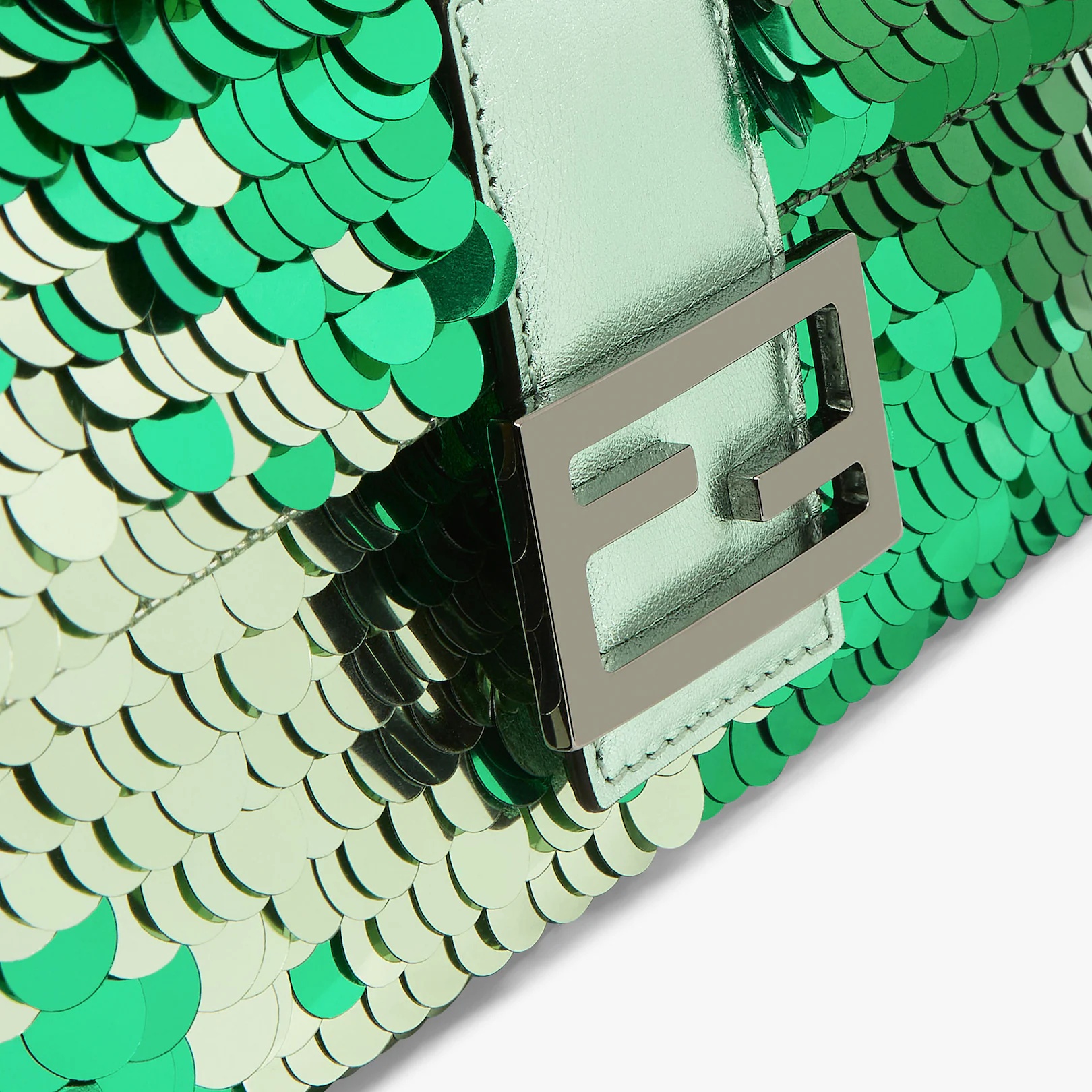 Medium 1997 Baguette bag with all-over metallic sequin embroidery in shades of green and silver crea