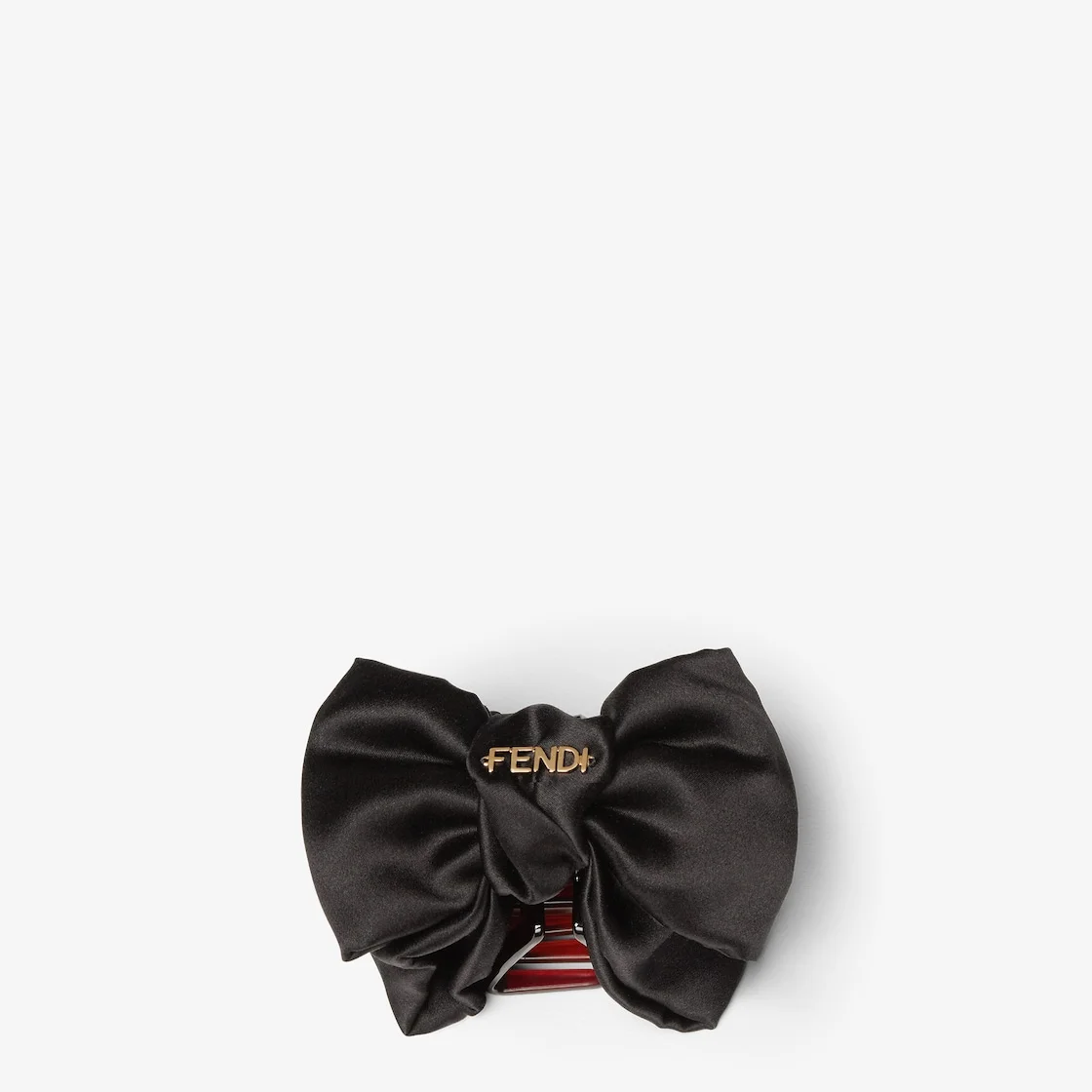 Claw hair clip with bow motif. Made of black silk. Decorated with the Fendi Roma lettering in metal on the front. Gold-finish metalware. Made in Italy Composition: 100% silk, 100% methacrylate Product Code: FXT140AVDUF0QA1