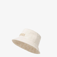 Reversible bucket hat with narrow brim. Made of camelia cotton canvas. One side is customized with the iconic all-over FF motif in beige, the other with the Fendi logo embroidered in the same tone on the front. Made in Italy Composition: 66% cotton, 34% polyester Product Code: FXQ977AVGLF0NH8