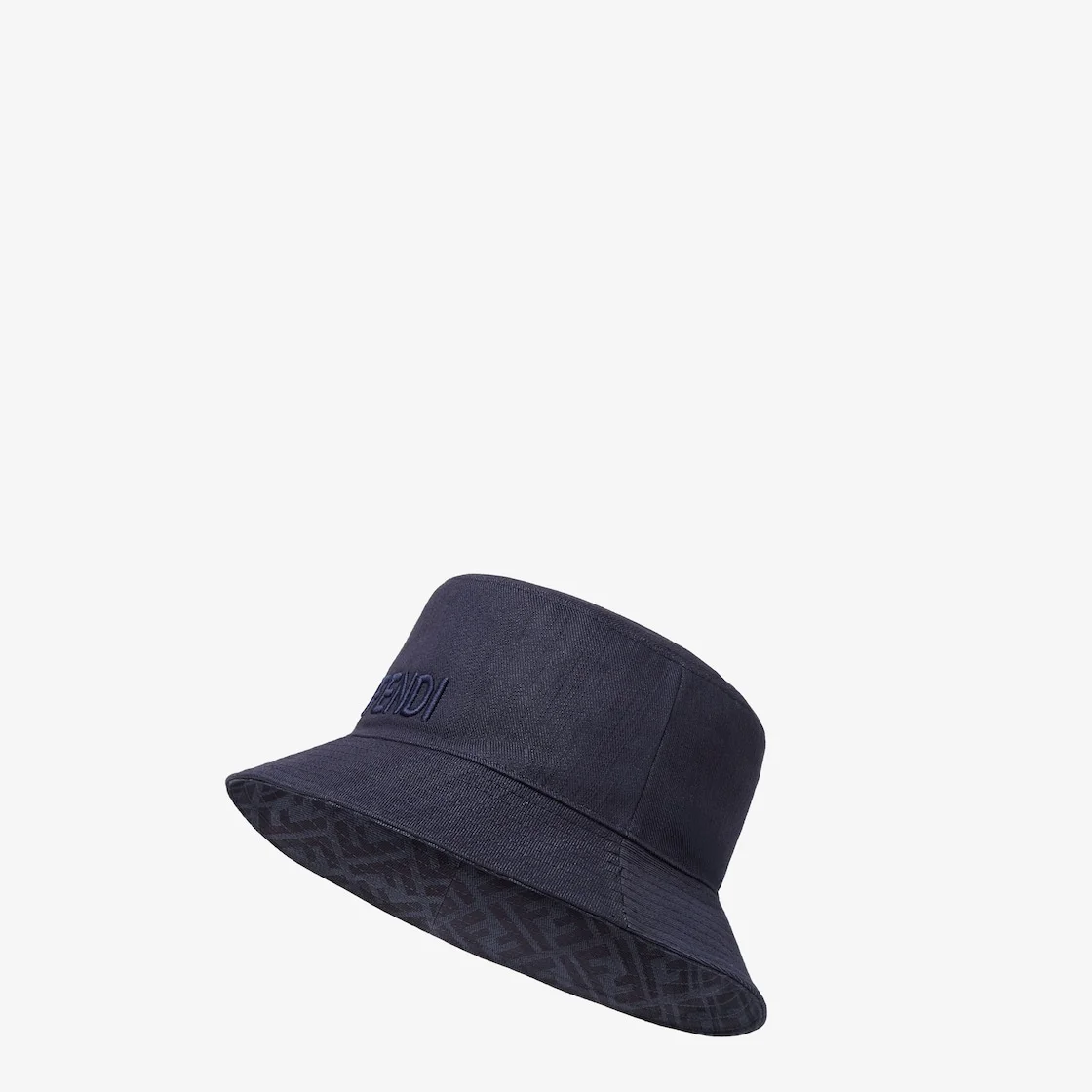 Narrow-brimmed bucket hat made of a dark blue cotton denim. One side is customized with the iconic all-over FF motif, the other with the Fendi logo embroidered in the same tone on the front. Made in Italy Composition: 66% cotton, 34% polyester Product Code: FXQ977AVGLF0RU7
