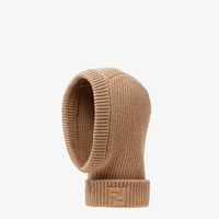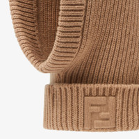 Beige balaclava-style hat made in a wool and cashmere fisherman’s rib knit. Cuff with a plain-knit, embossed FF detail in matching tones. Made in Italy Composition: 90% fleece wool, 10% cashmere Product Code: FXQ880ASG2F15W8
