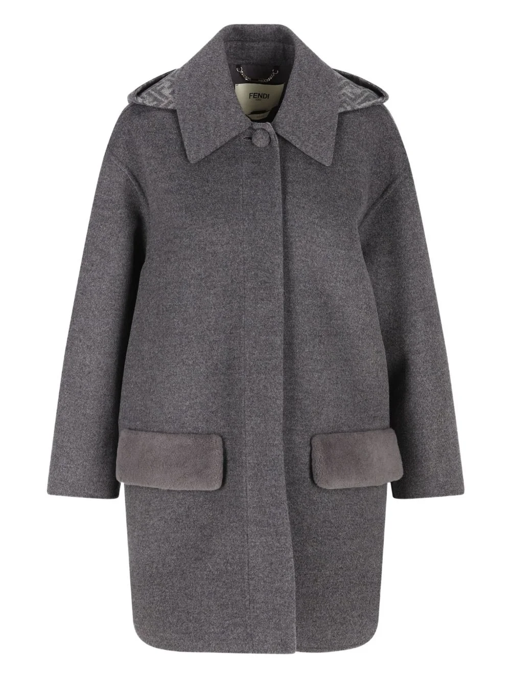 hooded flap-pocket coat Highlights - Grey - Hooded - Patch pockets - Fleece pocket trim - Button fastening Made in Italy Composition Outer: Virgin Wool 9%, Silk 1% Lining: Silk 100%