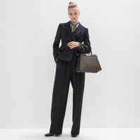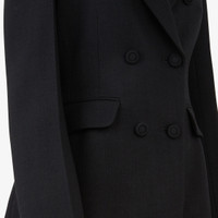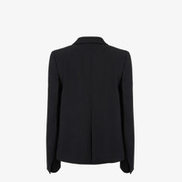 Double-breasted jacket, fitted at the waist. Peak lapels, breast pocket and flap pockets on the front. Closure with covered buttons. The style belongs to the collection curated with designer Stefano Pilati and is made of black wool crêpe. Made in Italy Composition: 89% fleece wool, 11% polyamide, lining: 100% cupro, secondary lining: 100% viscose, buttons: 100% mother-of-pearl Size worn: 38 IT. The model is 180 cm tall Product Code: FJ7454AXAUF0GME
