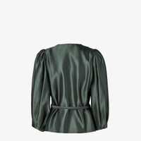 Crew-neck, straight-cut jacket with 3/4 balloon sleeves. Concealed front closure. Made of dark green silk duchess satin. Matching belt with FF buckle. Made in Italy Composition: 100% silk, 8 buttons: mother of pearl Size worn: 38 IT. The model is 180 cm tall Product Code: FJ7672A9DGF1T6I
