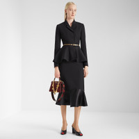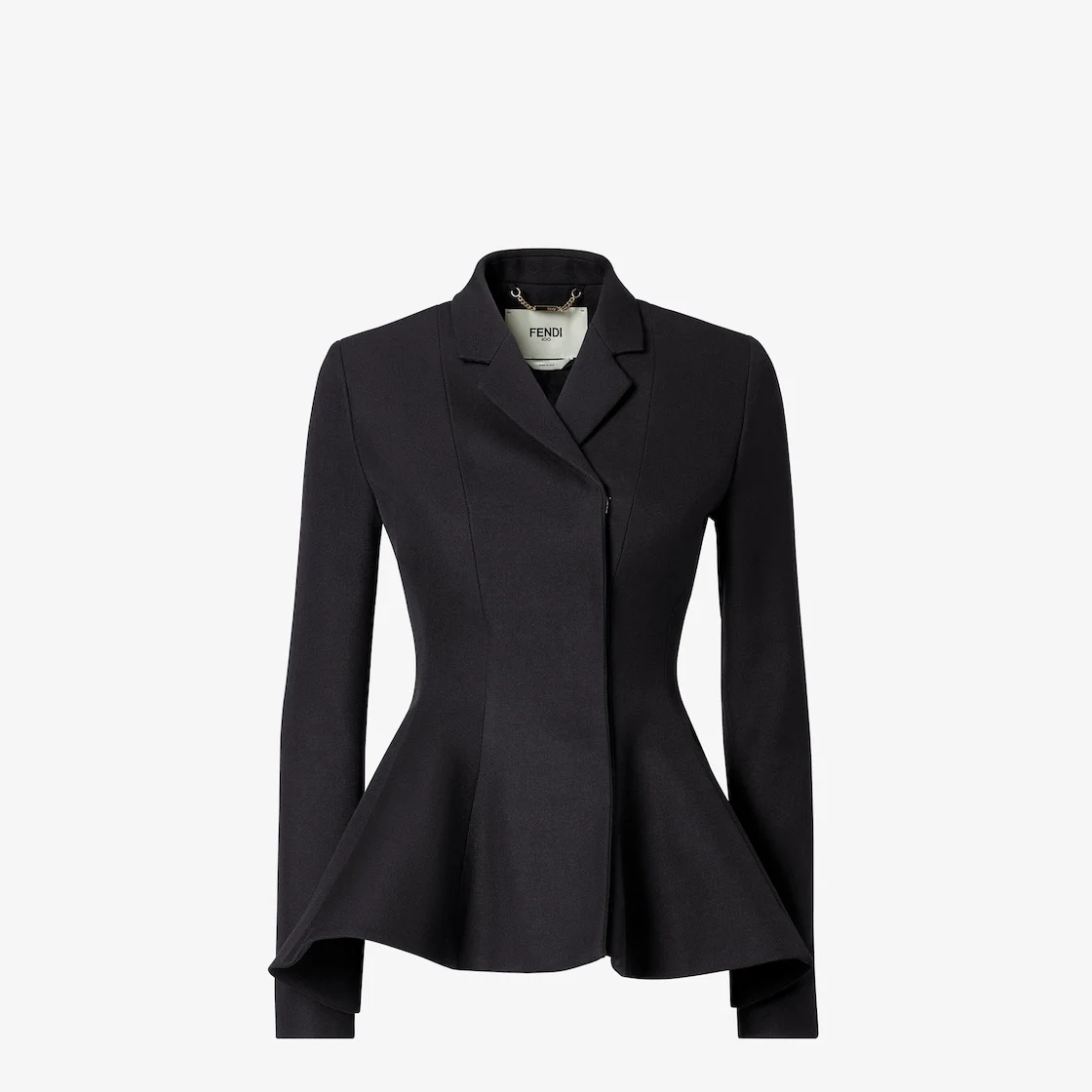 Double-breasted jacket with peplum detail at the hem. Lapel collar and long sleeves. Lined. Concealed closure. Made of black wool grain de poudre. Made in Italy Composition: 100% fleece wool, lining: 100% cupro, 2 buttons: 100% horn Product Code: FJ7644AJYFF0GME