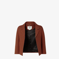 Short, slim–fit jacket. Lapel collar and 3/4 raglan sleeves. Lined. Made of wool and silk with Fendi Mini Dots geometric print in red and black, inspired by the iconic Fendi Fall/Winter 2000 fashion show. Made in Italy Composition: 77% wool, 23% silk, 100% viscose Size worn: 38 IT. The model is 180 cm tall Product Code: FJ7642AYN3F1TRL