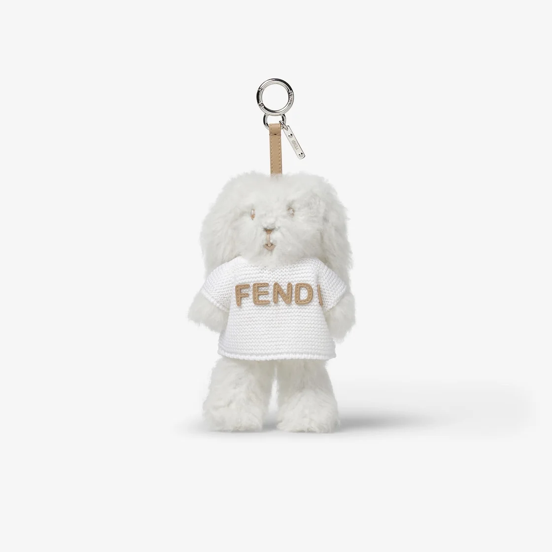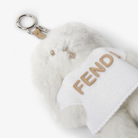 Bunny charm in white shearling with cotton knit and Fendi embroidery in beige leather. Made in Italy Composition: 100% brass, 100% sheep leather Product Code: 7AS401AV3YF0W6Q