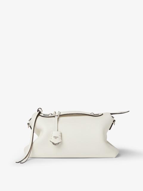Iconic large By The Way Selleria bag, reworked for the Fall-Winter 2024/25 fashion show for a soft, lightweight look. Made with 200 hand-sewn tone-on-tone macro topstitches, an emblem of the iconic Selleria workmanship handed down through generations of Fendi artisans since 1925. Made of white Cuoio Romano leather, calfskin with a characteristic natural grain produced with a metal-free tanning process. Featuring a leather-lined interior, hand-stitched Selleria stamp in Cuoio Romano leather and palladium-finish metalware. Customizable pendant and long zipper-pull with knot. The bag can be carried by hand with the handles, or worn either on the shoulder or cross-body with the adjustable, detachable shoulder strap that can be knotted. Made in Italy Composition: 100% calf leather, inside: 100% calf leather Product Code: 8BL156ASU2F1JBP