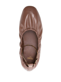 leather ballerina shoes Highlights - Olive brown - Calf leather - Smooth grain - Ruched detailing - Logo-engraved detachable ankle strap - Branded heel counter - Square toe - Branded leather insole - Segmented rubber sole - This piece comes complete with a protective dust bag. Made in Italy Composition Outer: Calf Leather 100% Lining: Calf Leather 100% Sole: Calf Leather 100%, Rubber 100% SIZE & FIT Measurement HEEL 0.78 in(2 cm) Sole height 0.59 in(1.5 cm)
