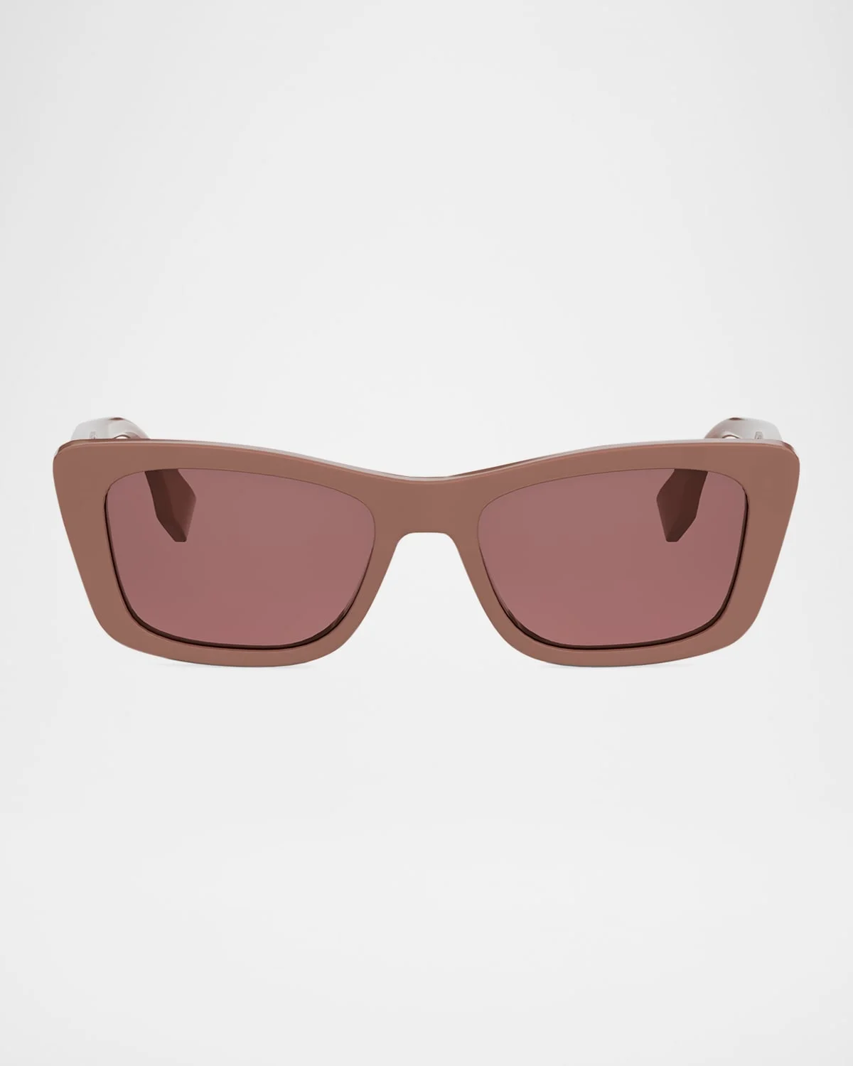 Fendi "Lettering" sunglasses in acetate feature the brand's signature logo script at the temples Lens/bridge/temple (in mm): 5318145 Rectangular butterfly frames Acetate nose pads Thin, tapered arms 100% UVA/UVB protection Made in Italy