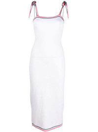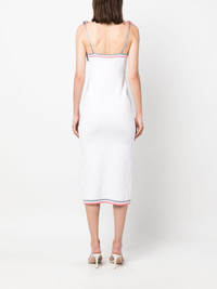 monogram midi dress Offering a maximalist take on branding, Fendi presents this midi dress. The spaghetti-strap design features an all-over monogram pattern, elevated with logo-striped trims. Highlights - White - Monogram pattern - Stripe trim - Square neck - Spaghetti straps Made in Italy Composition Viscose 57%, Polyamide 39%, Polyurethane 4% SIZE & FIT Model measurements Height 5 ft 10 in(1.78 m) Bust/Chest 33.46 in(85 cm) Hips 36.22 in(92 cm) Waist 23.22 in(59 cm) FittingInformation Designed for a close fit throughout The adjustable shoulder straps allow for a preferred fit when worn Made from a midweight non-stretch fabric, this piece offers minimal elasticity when worn This piece fits true to size – take your usual size