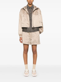 sand beige front two-way zip fastening drawstring hood two side slit pockets elasticated cuffs - Color: NEUTRALS - Made in: Italy - Designer Style ID: AT8H FAN198 F1RX9 Composition and care Outer Composition Polyester: 100.0%, Lining Composition Polyester: 100.0%, Outer Composition Polyurethane Resin: 100.0%