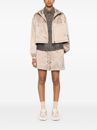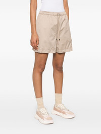logo-patch shorts Highlights - Light beige - Elasticated drawstring waistband - Two side inset pockets - Full lining Made in Italy Composition Outer: Polyester 100%, Polyurethane Resin 100% Lining: Polyester 100% SIZE & FIT Model measurements Height 5 ft 10 in(1.77 m) Bust/Chest 33.07 in(84 cm) Hips 37 in(94 cm) Waist 24.8 in(63 cm) FittingInformation Designed for a loose fit, offering comfort and movement when worn The elasticated waist allows for a comfortable fit Made from a midweight non-stretch fabric