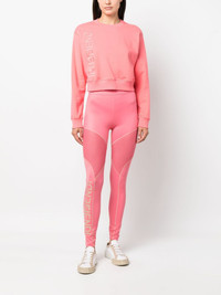 logo-print cropped sweatshirt Highlights - Flamingo pink - Cotton - Embroidered logo to the side - Crew neck - Long sleeves - Straight hem - Cropped - Ribbed cuffs and hem Made in Italy Composition Polyester 100%, Cotton 100% SIZE & FIT Model measurements Height 5 ft 11 in(1.8 m) Bust/Chest 33.07 in(84 cm) Hips 37.4 in(95 cm) Waist 25.19 in(64 cm) FittingInformation Designed to be unstructured, offering a loose fit throughout Made from a midweight non-stretch fabric, this piece offers minimal elasticity when worn This piece fits true to size – take your usual size Washing instructions Hand Wash