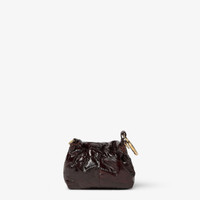 Iconic Nano Mamma Baguette bag. Featuring an FF clasp and magnetic button under the flap. The bag can be attached as a charm with the clip or worn on the shoulder and crossbody thanks to the adjustable chain shoulder strap. Made of brown hagfish leather with a glossy finish, hand-inlaid to create a chevron motif. Gold-finish metalware. Made in Italy Composition: 100% hag fish, inside: 100% calf leather Product Code: 7AS420AV5BF18H6