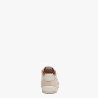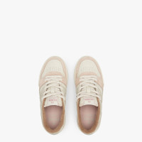 Fendi Match compact design sneakers with vintage label on tongue. Branded with FF pattern sewn on the side and embossed Fendi lettering on the sole. Made of pink suede with white leather details Embellished with tone on tone terry collar and laces. Covered rubber cupsole with light beige bumper. The style includes a second pair of white terry laces. Made in Italy Measurements: - Heel height : 20 mm Composition: 100% Calfskin, 100% Calfskin (suede), inside: 69% Polyester, 28% Polyamide, 3% Elastane, 100% Calfskin Product Code: 8E8252AHH2F1FHT