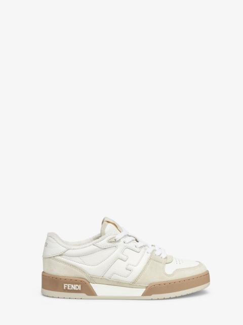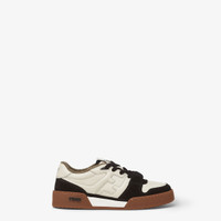 Fendi Match compact design sneakers with vintage label on tongue. Branded with FF pattern sewn on the side and embossed Fendi lettering on the sole. Made of black suede with white leather details. Embellished with black terry collar and laces. Covered rubber cupsole with brown bumper. The style includes a second pair of white terry laces. Made in Italy Measurements: - Heel height : 20 mm Composition: 100% Calfskin, 100% Calfskin (suede), inside: 69% Polyester, 28% Polyamide, 3% Elastane, 100% Calfskin Product Code: 8E8252AHH2F1FZB