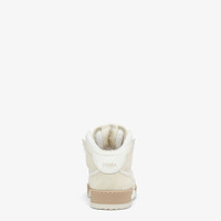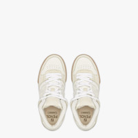 Fendi Match lace-up sneakers. Made of white leather with pale gray suede details. Rubber sole with Fendi lettering on the side. Made in Italy Measurements: - Heel height : 20 mm Composition: 100% calf leather, inside: 69% polyester, 28% polyamide, 3% elastane Product Code: 8E8358AHH2F1FHS