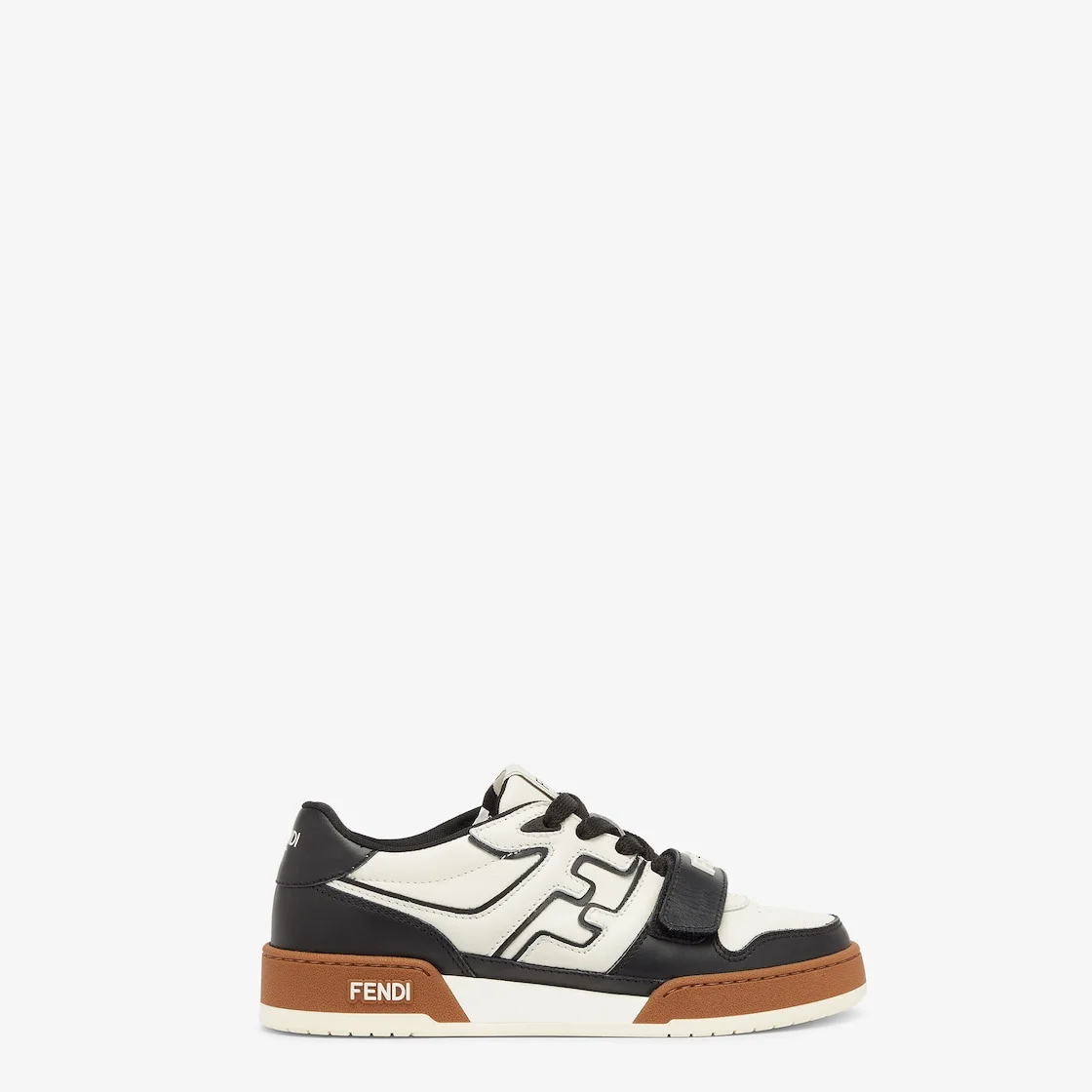 Fendi Match lace-up sneakers. Made of black leather with white leather details. Strap with Fendi lettering. Rubber sole with Fendi lettering on the side. Made in Italy Measurements: - Heel height : 20 mm Composition: 100% calf leather, inside: 100% polyester Product Code: 8E8453AOMNF1ME7