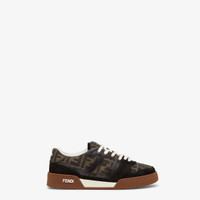 Fendi Match lace-up sneakers. Made of black suede with brown and tobacco jacquard FF fabric details and part of the collection curated with designer Stefano Pilati. Injection-moulded FF appliqué. Rubber sole with Fendi lettering on the side. Made in Italy Measurements: - Heel height : 20 mm Composition: 100% calf leather, interior: 100% polyester Product Code: 8E8470AQ6IF17JT