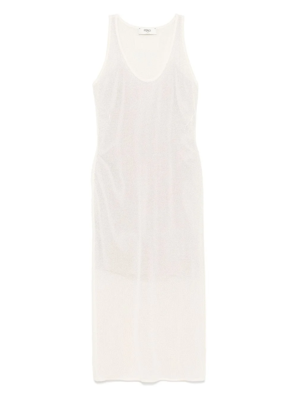 sleeveless midi dress Highlights - Light beige - Internal slip dress - Jacquard logo motif - Scoop neck Made in Italy Composition Silk 99%, Elastane 1% SIZE & FIT Model measurements Height 5 ft 10 in(1.78 m) Bust/Chest 31.49 in(80 cm) Hips 37 in(94 cm) Waist 23.62 in(60 cm) FittingInformation Designed for a slim fit that sits just away from the body offering a close yet comfortable fit The detachable slip sits just away from the body, offering a close yet comfortable fit Made from a midweight stretch fabric, this piece offers elasticity and flexibility when worn