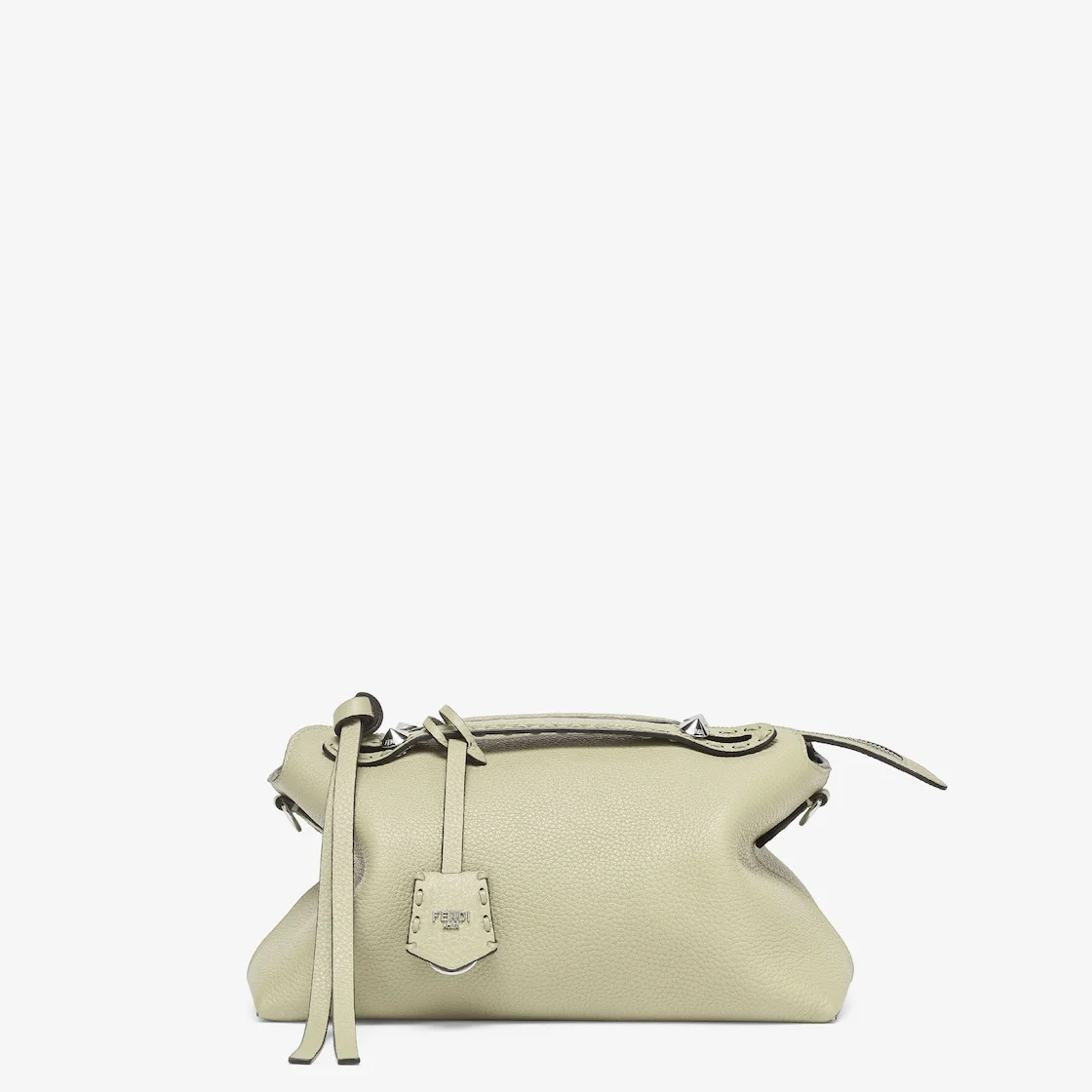 Iconic medium By The Way Selleria bag, reworked for the Fall-Winter 2024/25 fashion show for a relaxed, lightweight look. Made with 192 hand-sewn tone-on-tone macro topstitches, an emblem of the iconic Selleria workmanship handed down through generations of Fendi artisans since 1925. Made of sage green Cuoio Romano leather, calfskin with a characteristic natural grain, produced with a metal-free tanning process. Featuring a leather-lined interior, hand-stitched Selleria stamp in Cuoio Romano leather and palladium-finish metalware. Customizable pendant and long zipper-pull with knot. The bag can be carried by hand with the handles, or worn either on the shoulder or cross-body with the adjustable, detachable shoulder strap that can be knotted. Made in Italy Composition: 100% calf leather, inside: 100% calf leather Product Code: 8BL155ASU2F1GMK