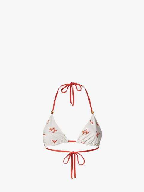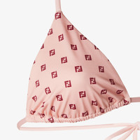 Adjustable triangle bikini top made of Lycra® with micro patchwork print that depicts a combination of logos and archive patterns in light pink and marsala tones. Made in Italy Composition: 78% polyamide, 22% elastane, lining: 82% polyamide, 18% elastane Product Code: FXBA51AT8TF1MVQ